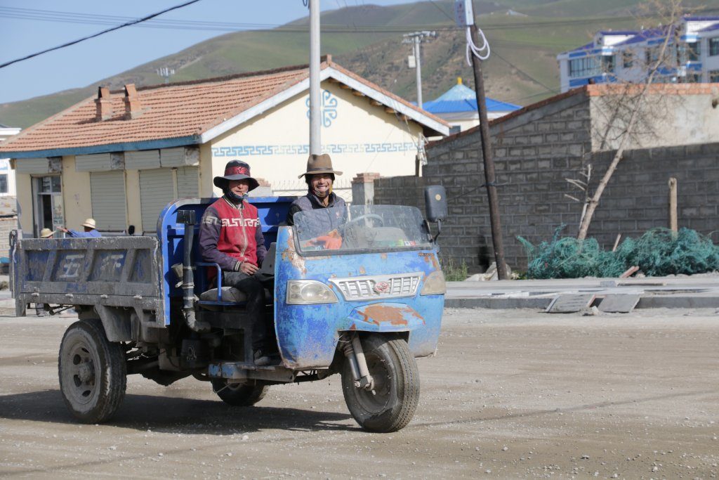 We crossed a pass between two mountains which was covered in colourful prayer flags and surrounded by flocks of grazing black yak and continued further into the Nomad’s land. All of a sudden the two lane road became twice as big and we drove through a large stupa-like gate that welcomed us to the town of Sogzong. On the main road plenty of people gathered for buying groceries at one of the many fruit- and vegetables shops or in one of these varied Chinese multi-stores which I just could not classify until today.